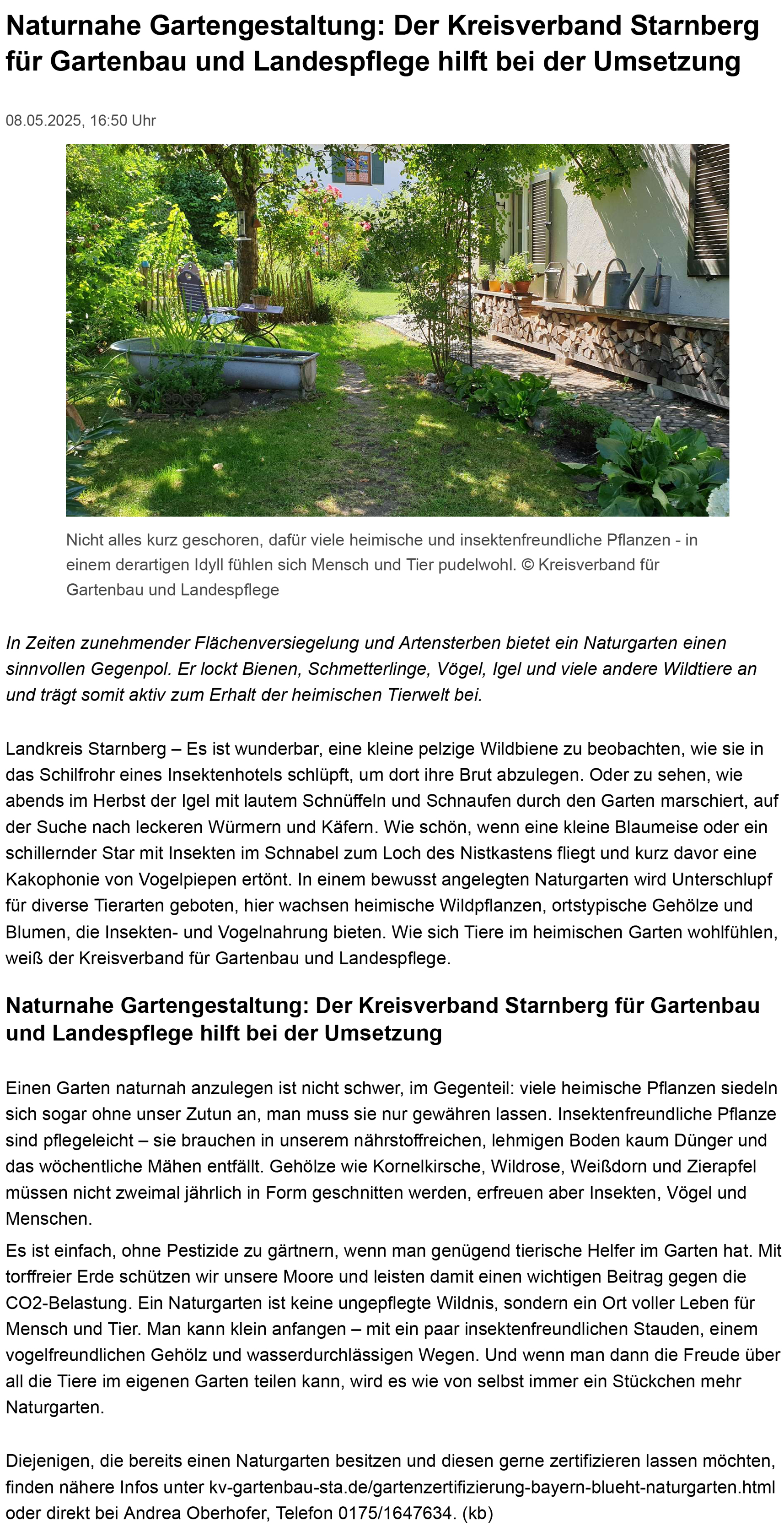 Ein Jahr Naturgartenzertifizierung in Starnberg
